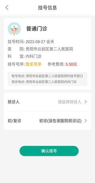 6、最后【选择就诊人】,点击【确认挂号】并【完成缴费】即可成功预约挂号。