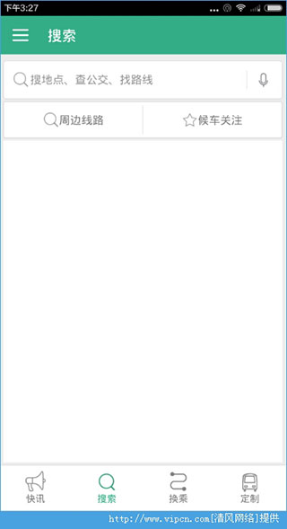 2、进入搜索页面,用户可以搜索你想查询的公交,并支持了解周边的线路和候车关注哟。