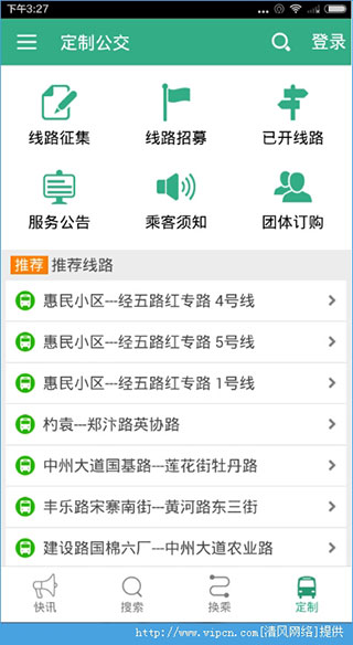 4、进入定制公交,用户即可以进行线路征集、线路招募、团体订购等活动。
