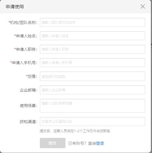 2、之后在申请使用表格中申请信息就可以完成注册了。