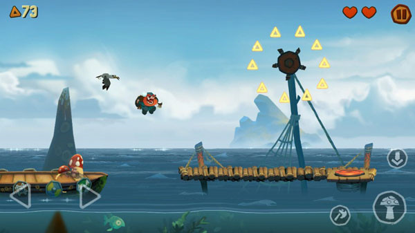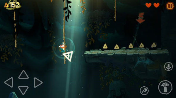 奥德玛的操作并不复杂,和其他的很多横版通关游戏是类似的,左右是控制奥德玛主角进行移动的,右侧的话通过上滑,让主角进行跳跃。