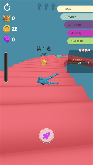 这个游戏叫《给我滚下去》,听起来名字有点搞,但实际玩起来还挺有趣的。游戏是卡通风格的休闲闯关类,大家在一个巨大的楼梯上比赛下滑,用手指滑动控制角色,中途可以和其他人互动干扰,目标就是第一个到达终点。玩法简单,但又不失挑战性,特别是当你想秀出酷炫的飞跃姿势的时候。