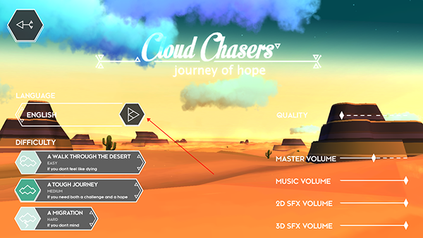 游戏特色包括非线性的故事情节、云滑翔机玩法以及沙漠生存挑战。色调浓郁的画面和悠扬的背景音乐让玩家瞬间沉浸其中,仿佛置身于这片独特的荒漠世界。此外,游戏支持中文设置,操作简单,玩家只需按照提示切换语言即可。