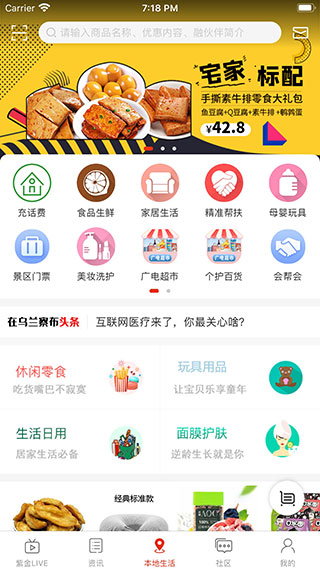 3、app拥有紫金live,资讯,本地生活,社区等功能内容。