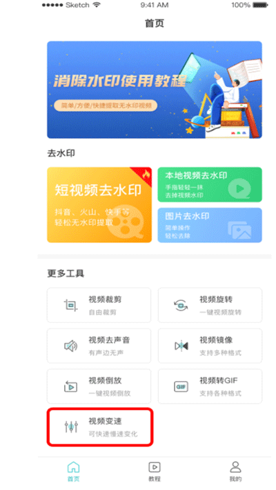 1、进入首页后点击进入视频变速板块