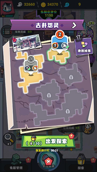 除了经营部分,还能派员工出去探索,遇到随机事件还能获得金币和碎片奖励。这些碎片可以用来合成更强大的鬼怪,每个鬼怪都有独特的技能,能提升鬼屋的收益和恐怖氛围。感觉这个游戏把恐怖元素和模拟经营结合得很好,既有趣又不复杂。