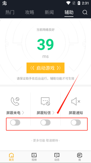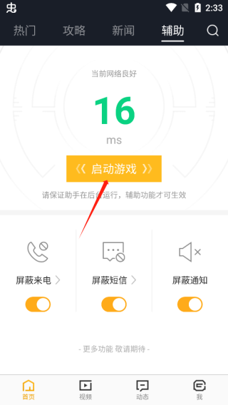 5、即可将屏蔽来电、短信、通知打开,点击启动游戏即可