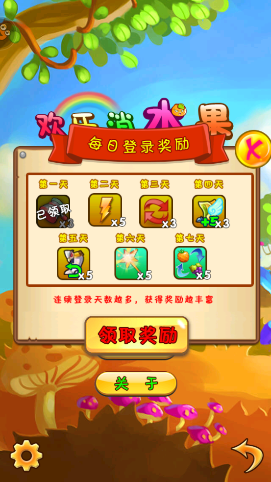 1、下载好欢乐消水果官方版进入游戏,领取登录奖励;