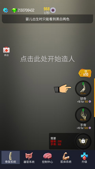 1、玩家进入之后就可以通过细胞从每一个单独的器官开始养成人类了;