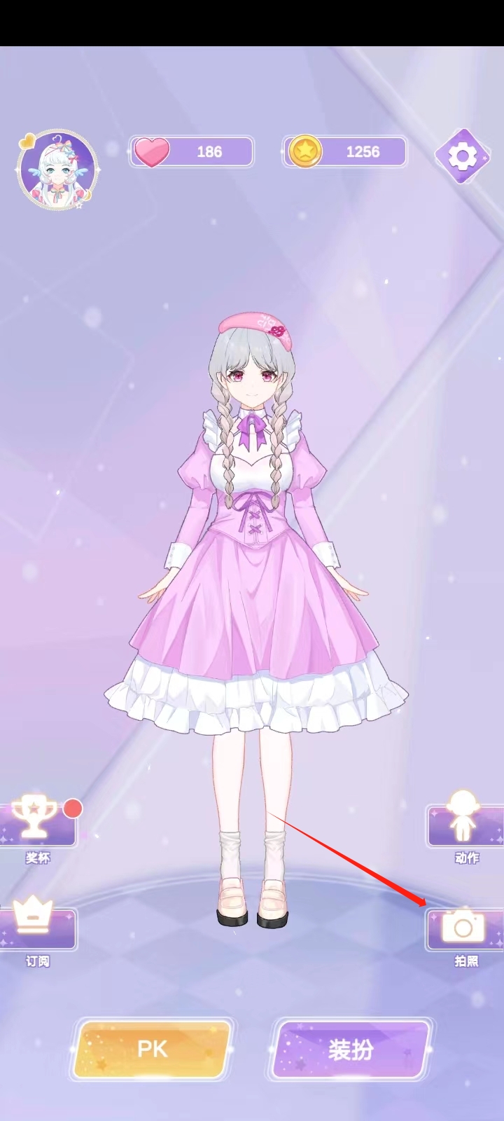 4、之后就会最开始的那个页面,我的刚刚装扮的任务也已经保存下来了,点击旁边的【拍照】;
