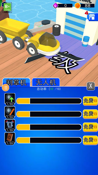 3、操控你手上的除草机,修剪所有的草坪,同时要注意杂草的快速生长;
