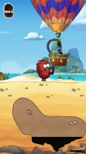 屏幕左上角会有小怪物吸收石油的程度,当收集满以后,热气球就会出现,我们将走过去就能将石油吐出去,这样就完成任务了。