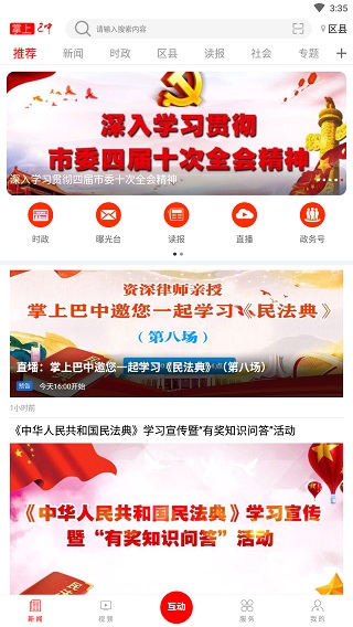 掌上巴中app是一款以移动客户端为主要载体的新媒体产品,该产品以巴中地区新闻网的内容为主,涵盖了全区90%以上的新闻网站,而且还有完善的集纳了各类新闻信息资源,不仅可以包括旅游景点、生活资讯、国内新闻、等方面信息,还有视频、广播、网络直播等资源,实现了让大家轻松在手机上看新闻,这将极大地促进用户的信息获取,因此深受众多巴中人民所喜爱。