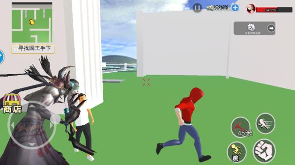 2、通过虚拟按键可以做到移动、奔跑、跳跃、拉钩锁等一系列操作。