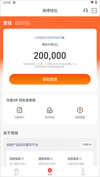 微博钱包·借钱频道属于微博官方平台,贷款资金来自合作的各大持牌金融机构,平台不提供任何贷款资金,合作金融机构资质齐全,为您提供专业、智能、便捷的个人消费借贷服务。