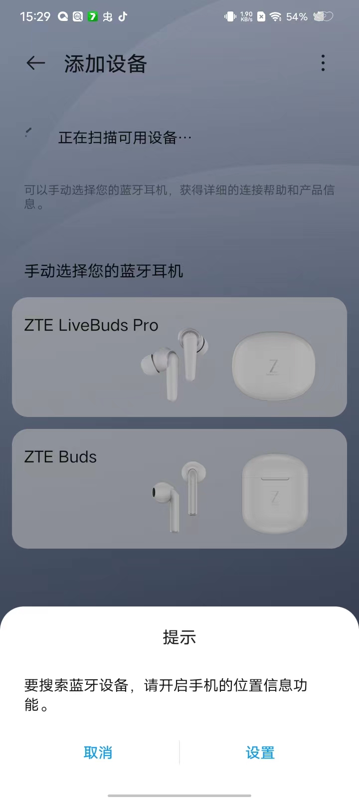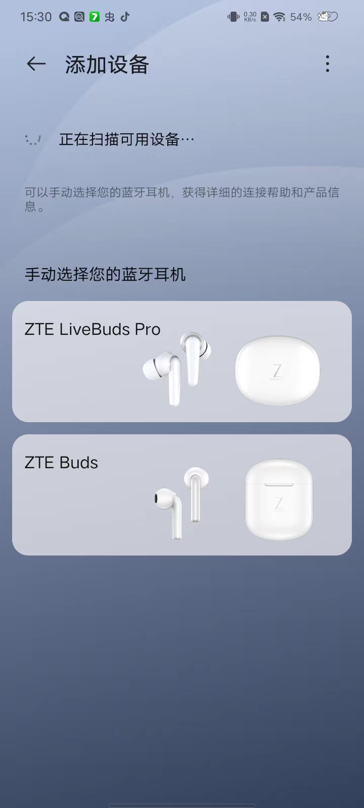 4、这里选择的是手动选择,找到你的中兴蓝牙耳机并点击,打开您的耳机盒,将您的耳机靠近手机,等待手机与耳机配对成功;