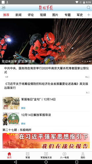 解放军报app是一款军事新闻资讯服务平台,它是由解放军报社推出的。该软件主要给用户们提供的就是军事爱好者的一些资讯以及阅读等一些服务的,软件为了满足广大群众的要求还提供了:文字、动静态图片、音视频、H5、VR、直播等多种播报形式来进行资讯的呈现。这方便用户更加高效的阅读到自己心仪的文章以及感兴趣的内容,软件还将这些资讯划分成为了:"独"、"锐"、"深"、"忆"、"视"五个频道,用户可以根据自己的实际情况点击进行查阅新闻,软件界面和其它新闻资讯软件一样,所以在视觉方面也是没有不适的,感兴趣的朋友们欢迎前来下载体验哦!