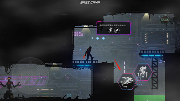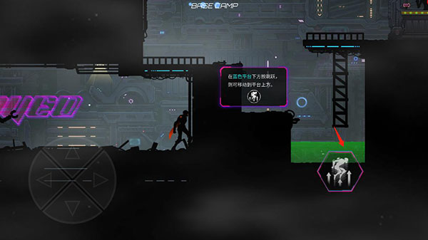 1、在蓝色平台下方可以点击跳跃,即可移动到平台上方;