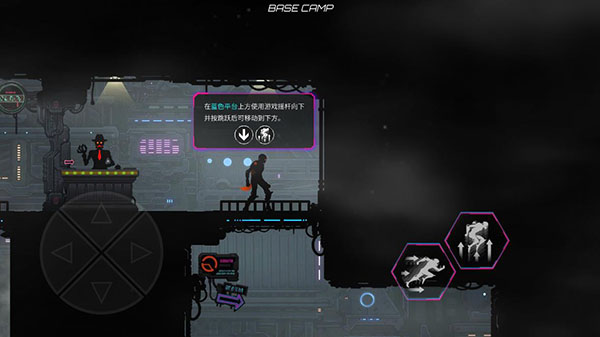 4、在蓝色平台上方可以使用游戏跳杆向下并点击跳跃就可以快速移动到下方。