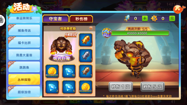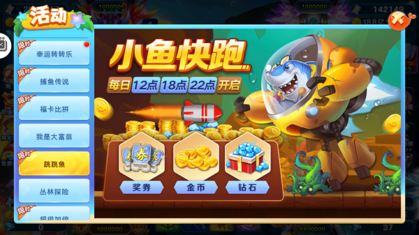 游戏中有好多品种的鱼,每种鱼都有不同的特点和难度,有时候得眼疾手快才能抓住稀有的大鱼。新人玩家可以通过完成任务来升级自己的武器,还能解锁新的房间。游戏里还有各种活动,比如五谷丰登、幸运转转乐等,这些活动能给玩家带来额外奖励。