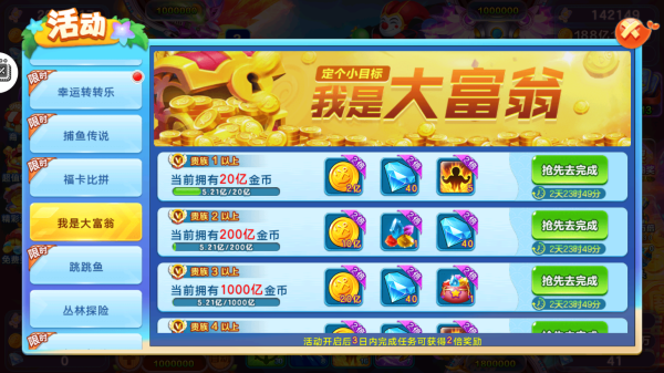 4、捕鱼进程完成到一定数额的时候,可以解锁新的房间;