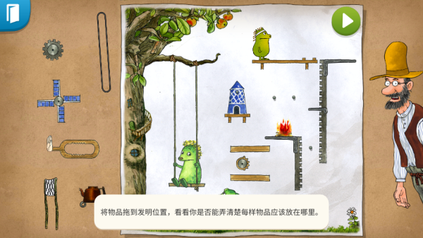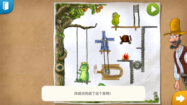 游戏有很多特色:36个新发明、原作者的画风设计、无广告内购等等,关键是操作简单又不失挑战性。玩法主要是拖拽物品到指定位置,完成机关任务。每关完成后还能解锁零件,解锁隐藏剧情,这点挺有意思的。