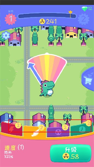 4、当获取的金币越来越多是,还可以对小怪兽的力量和速度进行升级,让它增加更大的破坏力。