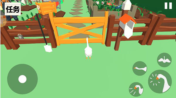 捣蛋大鹅模拟器手机版是一款很有趣的恶搞游戏,画风简约又有意思,3D视角让你更能感受到恶作剧的乐趣。游戏中你可以控制一只捣蛋的大鹅,在农场里为所欲为,完成各种任务解锁新关卡。任务包括进花园、让园丁湿身、偷钥匙、野餐等等,玩法多样,而且还能抢东西、占领村庄,感觉特别有意思。