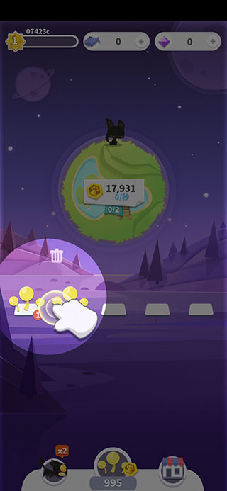2、你将会建设一个全新的喵星球,在这里穿梭,并收集许多可爱的小动物。