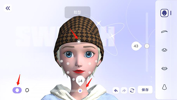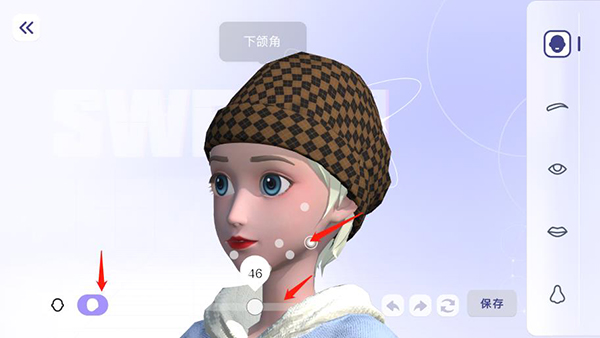 5、进入后首先点击正面,然后点击要更改的位置,之后可以在下面后旁边滑动调整参数;