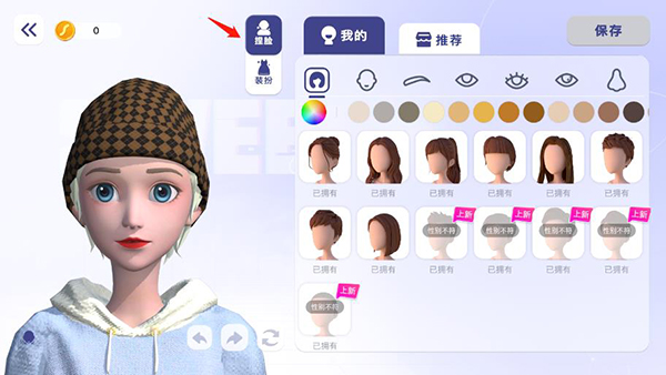 4、还有一种捏脸方法是自定义捏脸,点击左下角的捏脸;