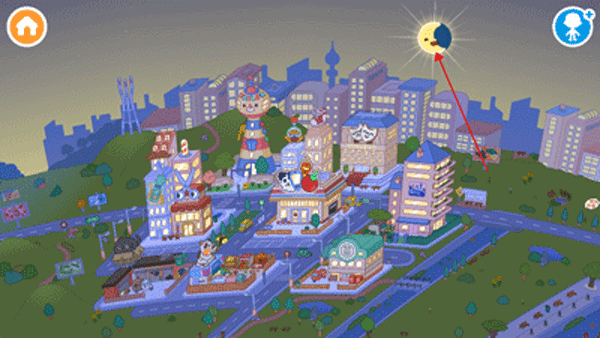 6、点击首页天空上的月亮/太阳即可切换为白昼或者黑夜