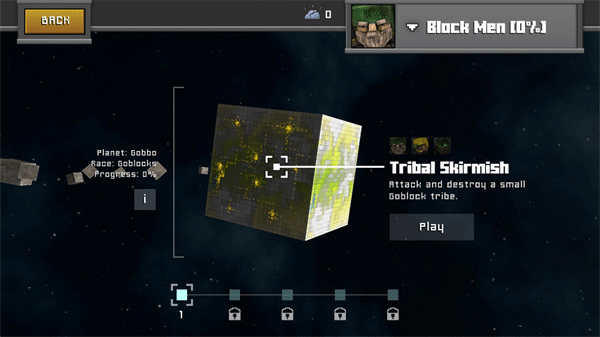 2、每一个星球都有着独特的玩法,点击"Play"开始游戏,体验一场又一场大规模的战役;