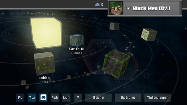 1、打开游戏,游戏有五个星球可以选择冒险,一个方块代表一个星球;