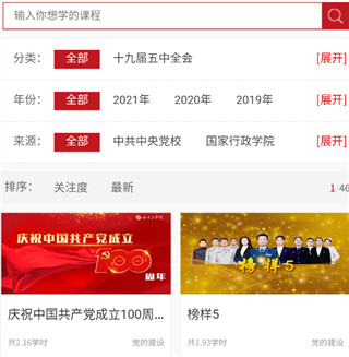 2、进入课程,用户可以根据类别、年份来筛选自己想要的学的课程