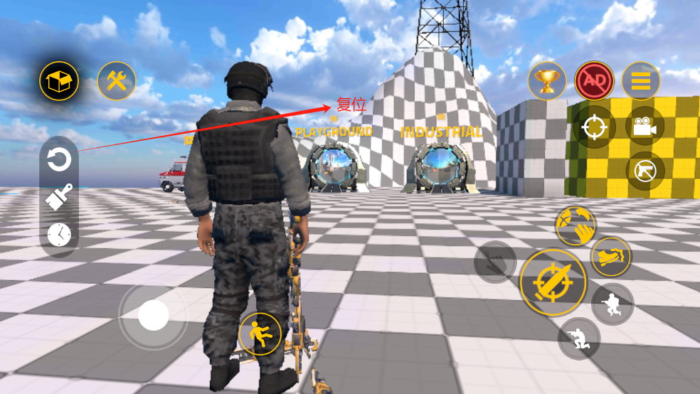 2、探索游戏中的领域,在其中释放类似于沙盒游戏的创造力,像构建游戏一样进行构建,并以枪支游戏的强度参与追逐。