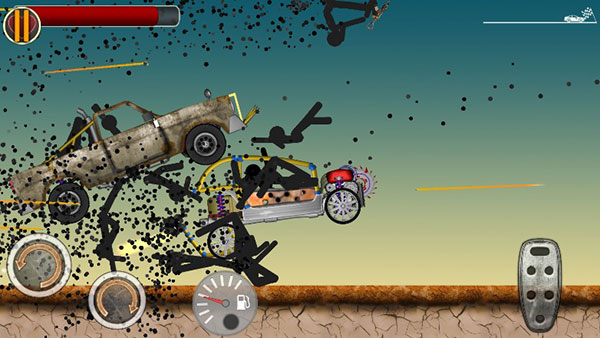 火柴人歼灭2是一款以火柴人为题材的射击战争类的冒险游戏,游戏采用精致的横版风格进行打造,为玩家们带来超棒的视觉体验!在游戏中玩家驾驶战车车在路途中会遇到其他火柴人的狙击,你需要用驾驶的战车将他们撞飞,屏幕左侧分别操控战车的重心前置或后置,在飞跃和撞击时保持重心避免翻车,屏幕的右侧是油门按钮,按住不动就会进入冲刺模式;战车的装备可以抵御其他火柴人的射击和撞,玩家可以对战车的装备进行升级,侧重马达轴承提升战车的性能,升级绞肉器火焰喷射器增强杀伤力;此外,还可以还使用枪械射击对方,从而顺利达到终点完成挑战。该游戏给玩家带来了轻松有趣的体验,简单的操作让每个玩家都能够快速的上手,丰富的玩法内容更是给玩家欢乐的体验!