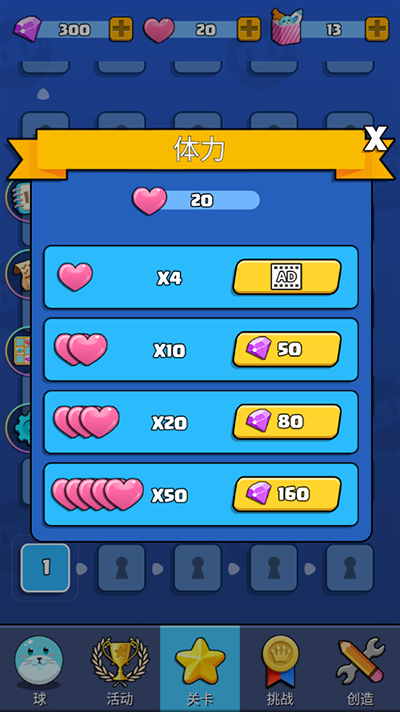 6、进入游戏的关卡,需要消耗体力,而体力可通过钻石兑换,如图所示