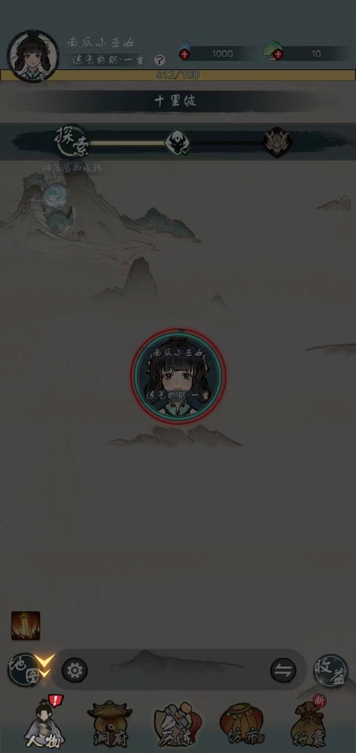 2、之后就可以开始我们的修仙之旅,先点击下方导航栏中的【历练】,再点击【出云谷】,去十里坡看看;