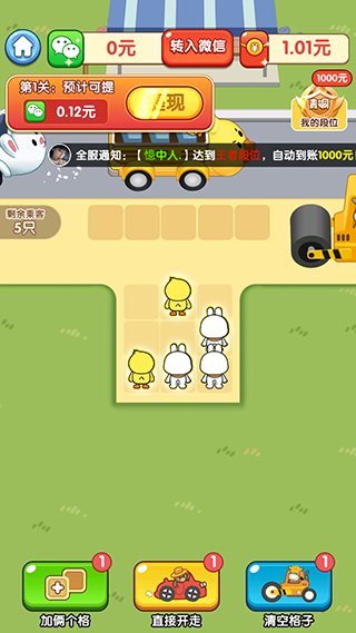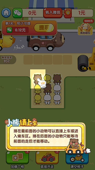 游戏的玩法简单又有趣,尤其是通过消除方块让小熊上车的过程,让人感觉特别有成就感。而且,完成关卡还能获得现金奖励,这也增加了游戏的乐趣和吸引力。个人觉得这个游戏不仅能让玩家锻炼逻辑思维,还能在娱乐中赚点小钱,挺不错的。