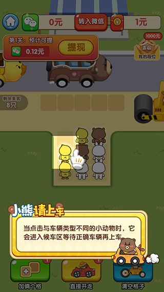 总的来说,小熊请上车是一款兼具趣味性和挑战性的游戏,适合喜欢消除类和益智类的玩家。如果你喜欢轻松有趣的游戏,不妨试试看!