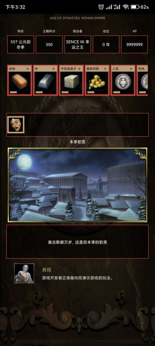 3、在游戏中有丰富的资源指标,玩家需要掌握好各方势力的平衡,让帝国走向强大,体验罗马的崛起与辉煌
