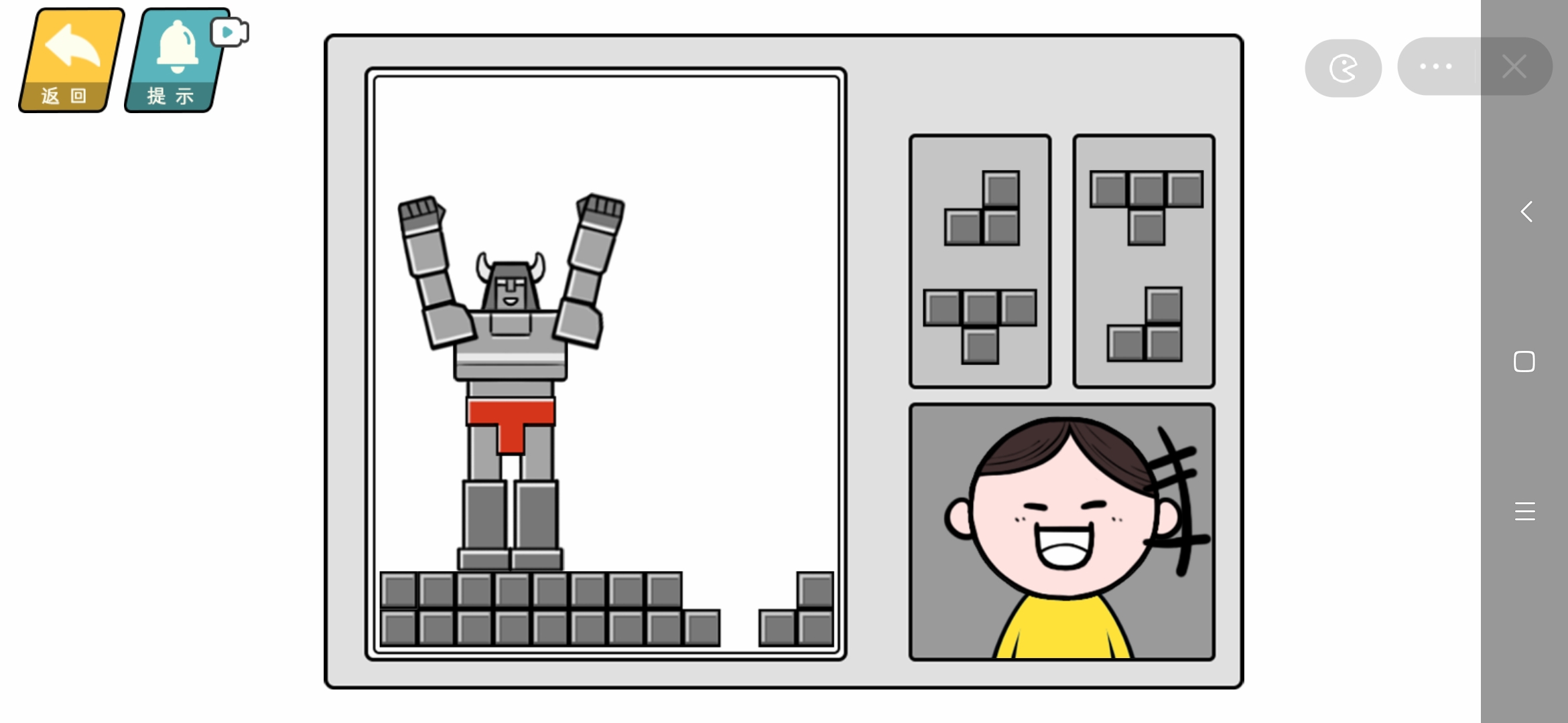 1、第三关我们可以看到是类似俄罗斯方块的玩法,旁边有个捂着裤裆的机器人