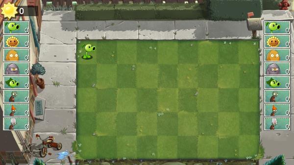 2、打开游戏后,可以先种一颗豌豆射手,然后静观其变