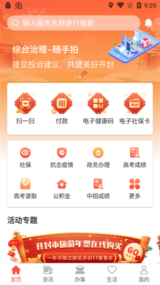 汴捷办app是开封市政府官方城市门户APP,通过大数据、云计算、人工智能等前沿技术,将多种应用加载到一个APP上,打造全市统一的移动便民服务平台,为开封本地居民提供政务服务、综合治理服务、公共服务、医疗服务和金融服务等五大服务,足不出户就能全方位的享受移动便民生活服务。“汴捷办”APP服务充分展现“为民服务”理念创新,实现政务服务858项事项“掌上办”,90%的便民服务“马上办”,将极大满足开封人民群众便捷办事的需求。此外它还以“服务可及”为特色,致力于打造市民服务“总入口”,用全新的、更好的使用体验,把服务窗口搬到群众手中,畅享城市综合服务。着眼于打通公共服务“最后一公里”,推进开封市跨层级、跨地域、跨系统、跨部门、跨业务的协同服务,提升公共服务均等化、普惠化、便捷化水平。