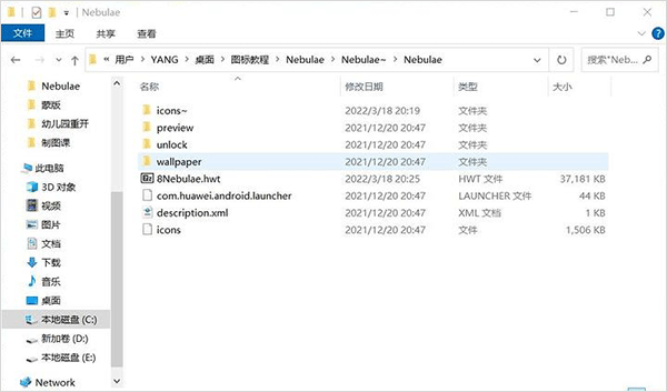 首先是华为官方的图标,下载好后,解压,在这个目录重新压缩成hwt格式