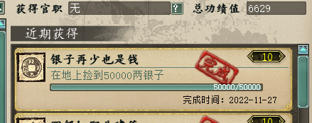 5、最后说一下每个整点会刷出多少份银子。我在刷的时候,这项功绩已经完成了25000+的银子,再捡一般就完成了。我一共捡了三个整点的银子,第一次是在渔村,捡到了12次,整张图只有我自己捡,因为是老区,所以没人抢。