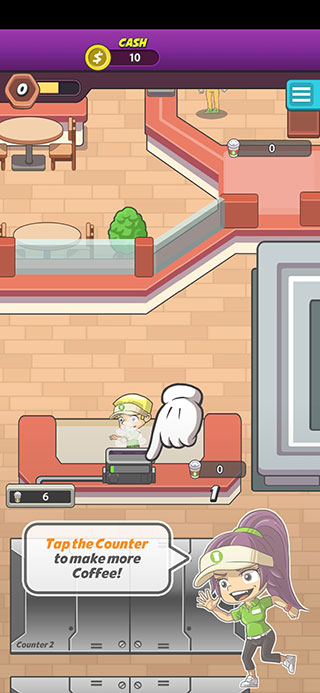 2、现在我们需要先解锁一个工作台,点击咖啡师,就可以加速咖啡的生产速度。