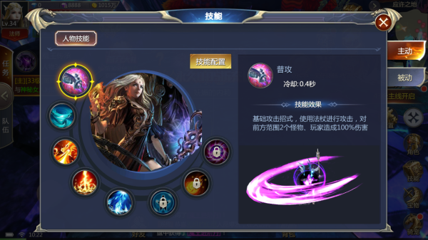 1、普攻:基础攻击招式,使用法杖进行攻击,对前方范围2个怪物,玩家造成100%伤害;