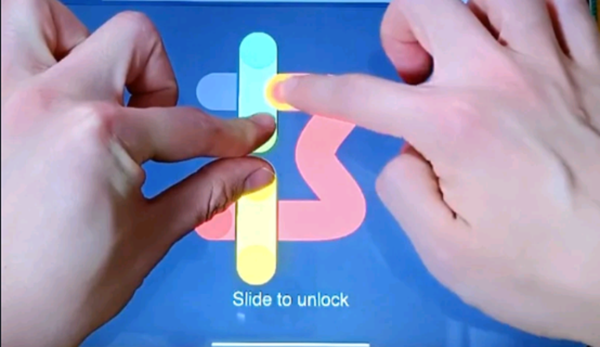 3、接下来便要两个手指操作了,需要同时移动到另一端圆圈上;